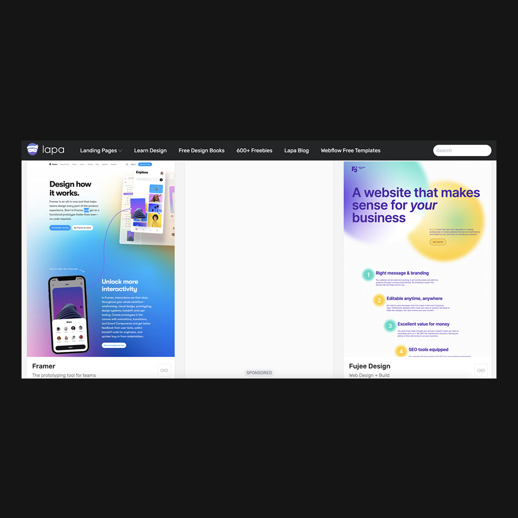 My design for Fujee Design Studio was featured on Lapa Ninja — a top web design showcase with 1.5K+ upvotes on Product Hunt.